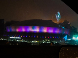 Only one interview session tomorrow - with Dabo when the team arrives at the airport, but we will be there, Here is the Superdome as we rolled int town