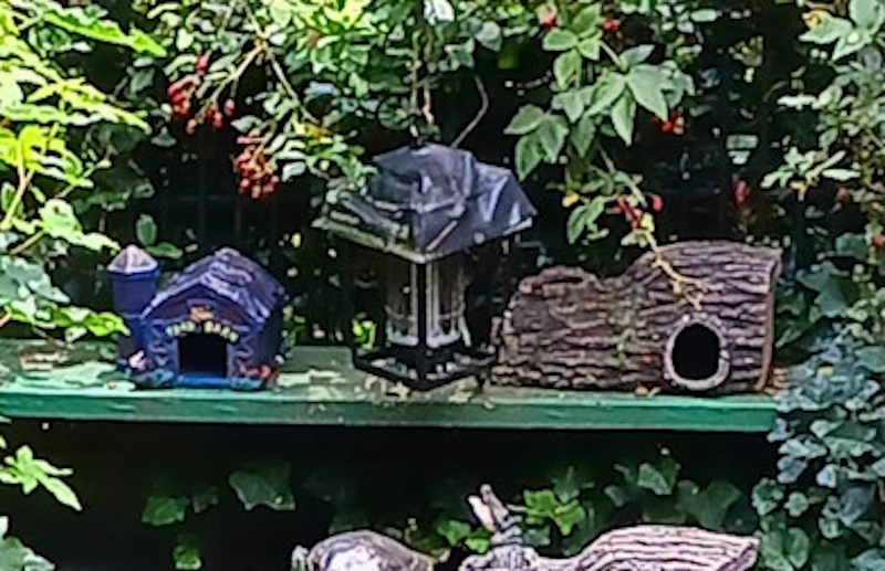 This pond is 18 years old and supports lots of critters inside and outside of it. Even deer drink there. There are a couple dozen old fat Sarasa Comets, some tadpoles, newts, frogs, and some turtles.