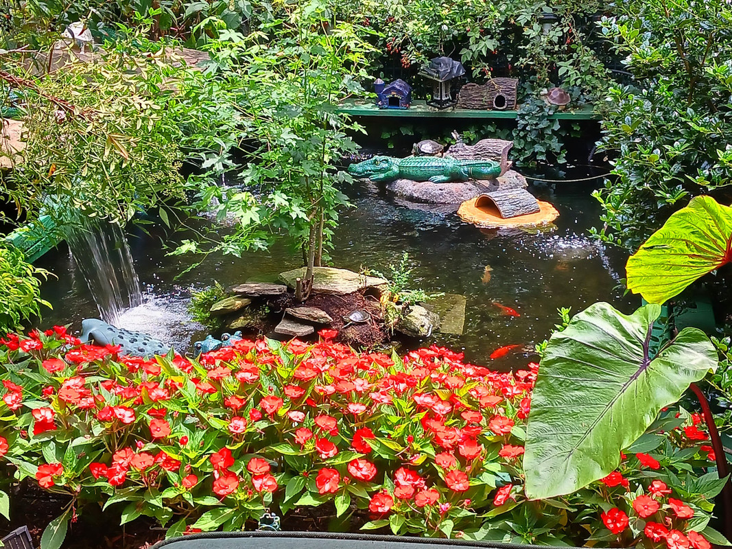 Those flowers in front are auto watered by a solar pump on a timer with nutrient rich pond water as I am lazy. They seem to like turtle water.