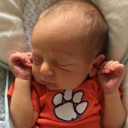 My son, Hunter Williams, was born last Tuesday, April 11. He already looks handsome in orange.