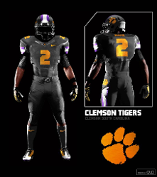I kinda like the lids, but without the Death Valley image on it. Too busy. The darker, metallic orange with the chrome paw looks pretty cool, and I like the wider orange and white stripes on the jersey. But - let's leave all that mess to Oregon and the others. As much as it would be fun to have alternate unis - we're Clemson, we don't need 'em!