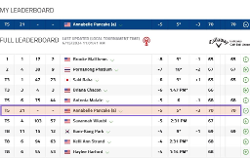 Annabelle shot -2 and is t21. But she tees off at 930 this morning. Hopefully skeeta56 has some time to follow.