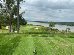 Here is a photo of the 15th tee, built on top of an abandoned "dynamite shack" with the green overlooking the Platte River.