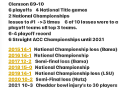You see, we Clemson folks were full of braggadocio and pomp over both our two titles, particularly, the last in which we romped Bama. That led to a misplaced belief that we were unstoppable. Then, we got a whack from LSU, followed by Ohio State, and this year have had a rude awakening even with a 10-3 record.