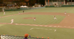 and was initially stunned when he threw home. After watching the replays several times it did not look like the pitcher got a good jump to cover first. Slaton is a fast guy. A bang bang decision. Credit Baum with hustling to home. Bet he was surprised too when the play was turned on him