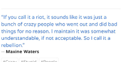 It doesn't really matter to me what the political affiliation is. Violence is violence. What happened at the US Capitol was wrong just as all the mayhem that happened last summer was wrong.