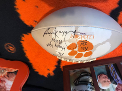 Today I attended the funeral of Lieutenant Colonel Al H Stuckey who at 103 years old, was the oldest known Clemson Alum alive. He graduated in 1936 and thereafter joined the Army and served in the Pacific theatre in WWII and later Korea. He rose to the rank of Lieutenant Colonel before settling in Hickory, NC to become High School teacher in the 1960s. He was a lifelong die hard Clemson fan. Attached pic, you will see him at a function we went to by the Fellowship of Christian Athletes in which Coach Swinney personally thanked Al and recognized him as the oldest Alum. Dabo was amazed quite simply. Dabo pondered in fact that as a military college in the 1930s all students were required to have rifles and now that would get you in trouble. Dabo gave him signed football, helmet and many other Clemson paraphernalia. It was a great gesture toward a man who at over 100 had seen it all when it came to Clemson University. Al in fact donated to the Alimni fund for over 80 years! And today at funeral, there was a Clemson memorial, a wreath sent by University and to top it off, Tiger Rag playing inside church at end service! Here’s to Colonel Al Stuckey! A true Clemson man through and through! Go Tigers!