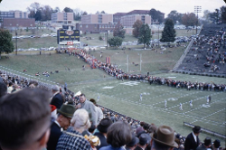 I was Probly in that picture somewhere. Hill back then was mainly a childcare area. Kids would get one of the little footballs the cheerleaders threw out and play on the terrace halfway down or slide on cardboard. Folks could watch their kids from the stands. Stands were Probly about 60 percent full cept for Coots maybe. Attendance picked up bout 75 with the decent year and kept going up since then
