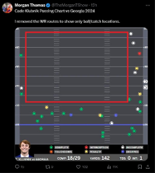 Morgan Thomas' passing chart comparisons week 1 & 2.