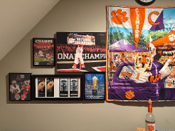 This wall is dedicated to the 2016 playoffs and championship with the SI’s, programs, tickets (the National Championship game tickets have been autographed by Dabo), and a big picture of my daughter in the Cub suit at the end of the game.