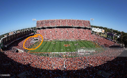 Even if that were true please explain the inverted triangle of Clemson seats? From TV it appeared there were virtually no seats assigned to Clemson at the bottom with 3/4ths or more at the very top. At Clemson over 1/2 the visiting team allotment is in the lower "bowl" with the band in the first 30 rows.