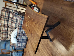 Well done; I like the live edge. Great job on the legs, they are impressive. What type of finish did you use?