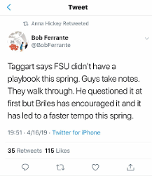 Do they get in the huddle and just draw up plays in the dirt like my rec league flag football game? Actually that’s not true, we have a base of 10 plays at least lol, what a joke! Our flag team offense is more complicated than FSU offense.