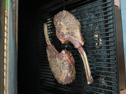 Ribs, yellow rice, fried Okra and Rye on the rocks.