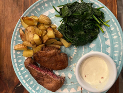 Ribeyes and twice-baked potatoes. Hot apple pie and ice cream for dessert.
