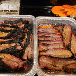 Build your charcoal base and bring smoker to 225. Take out the brisket and trim it to 1/4” fat cap. Anything more won’t render into meat candy. Slather the brisket with mustard and pack the dry rub to it. Place a temp probe in the brisket and smoke at 225-250 until it reaches 165 degrees. Smoke beyond this point will make the brisket too bitter. Wrap the brisket in pink butcher paper (this preserves the crunchy bark) and add a cup of broth, tallow, or au jus. Return to the smoker and cook until temp reaches 203-205. Here the most important part. Put a towel in the dry cooler and set the brisket on the towel. Place several more towels around the meat and let it rest for minimum one hour. This will ensure the brisket continues to render all the fat and connective tissue break down. When you slice it it will almost fall apart. It will be the most tender and juicy brisket you’ve ever eaten. If you need you can keep it in the faux cambro (cooler) up to four hours and it will stay above 140 degrees. Great for tailgating! Nothing better than home smoked brisket outside Death Valley Memorial Stadium.