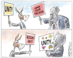 In this case, one side spent the entire four years using legal means, often in an illegal way, to nullify an election. I don't know how we return back from that. If that discussion turns into "Yeah, but you said/did that other thing first", we can't come back from it. Israel and Arabs justify their next action by exactly that logic, both thinking they are right.