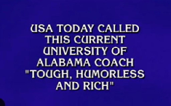 Saban is tough, humorless, and rich. He just doesn’t have fun like most people have fun. A sincere Jeopardy answer: