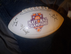 I’ll take the commemorative football from the 2016 national championship season at Deshaun Watson, Mike Williams and Hunter Renfrow signed. Please text me at 828/778 8800 to make arrangements to pick up the football and pay you. Thanks!