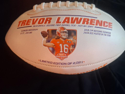 -Nikco Released 2016 Wilson Clemson Natty Football #'d out of 5000 (150$ OBO) -Nikco Released Raulings Trevor Lawrence commemorative football #'d out of 2021 (150$ OBO) -2016 Raulings Clemson Natty Commemorative football signed by DW4, Hunter Renfrow, & Mike Williams (150$ OBO) -2018 Sports Illustrated "Big Cats" with 15-0 DL on cover Power Rangers =signed by C Wilkins Dexter Lawrence, Clelin Ferrell, Austin Bryant (200$ OBO) -Clemson Mini-Helmet signed by Trevor Lawrence (150$ OBO) -Clemson football signed by Trevor Lawrence (150$ OBO) - Clemson Mini-Helmets signed by Dex, Dabo, Lamar (100$ OBO) Clemson Mini-Helmet signed by Dex, Coach V, and more (100$ OBO) *ALSO* I have a rare gold bottle champagne unopened manos 2018 National Champions 15-0 Best Ever limited edition - still trying to put a price on it
