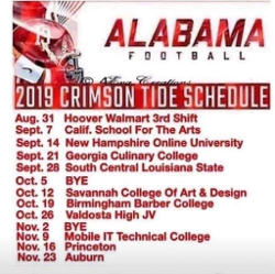 It's a good thing they get 2 BYE weeks this year. That schedule is full of trap games. What you missed is that EVERY team has a BYE week before playing Bama. Bama cannot catch a break.