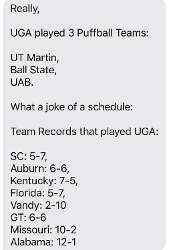 How many times was UGA in a close game at the half this year with that pitiful schedule of theirs? Weren't they down to SC at the half? Georgia's done!