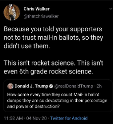 Stop being a sore loser like Trump and just understand that main in ballots are legal and that just maybe he may lose because he's a sexist incompetent president.