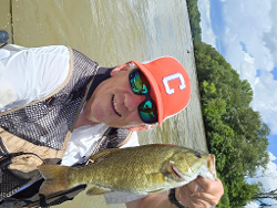 immediately started swimming sideways....It was awesome! They were all on about a 200 yard stretch of very slow moving water. I was wading with the kayak dragging behind me and I was about chest deep...WHen the conditions are like that again I will definitely go back over there. Did not know they called them meanmouths...but that IS what they are...it is pretty cool too when you are that deep and a big smallie hits and the next thing you know it is leaping above your head.....