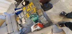 Am I lyin' fellas...I know we have some guys on here who are serious tournament fishermen. They have as much gear in their boat as I have in this pic of my floor...