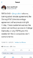 Well, we all know the success rate of "calling our providers." I hope ESPN/ABC isn't about to fall off the cliff.
