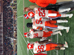 The RB group was stationed at the heater right in front of us all game at BC. Seems like a really good group of young men. There was a drunk BC kid harassing them the whole second half and they reacted with total class. Kinda wished for them they had 5 minutes alone with the entitled racist #### ant to #### him up. Anyhow it was cool watching them strategize, interact and prep for PT all game. At the end Dabo himself came over and hollered “Lyn J!” and Lyn J was very excited to buckle the chin strap and head in. First play big run. Awesome!