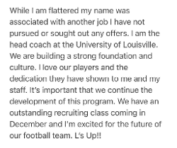 statement means absolutely nothing in the world of coaching. We see this kind of statement all of the time followed by the coach leaving for another job a few weeks later.