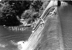 my self and a couple buddies were actually crazy enough to jump off the concrete platform on the left side of the ### into the lake below. About a 30 foot drop and you had to jump out to avoid hitting the concrete protruding at the bottom. I can't believe I did that when I go down there to Mountain bike these days.