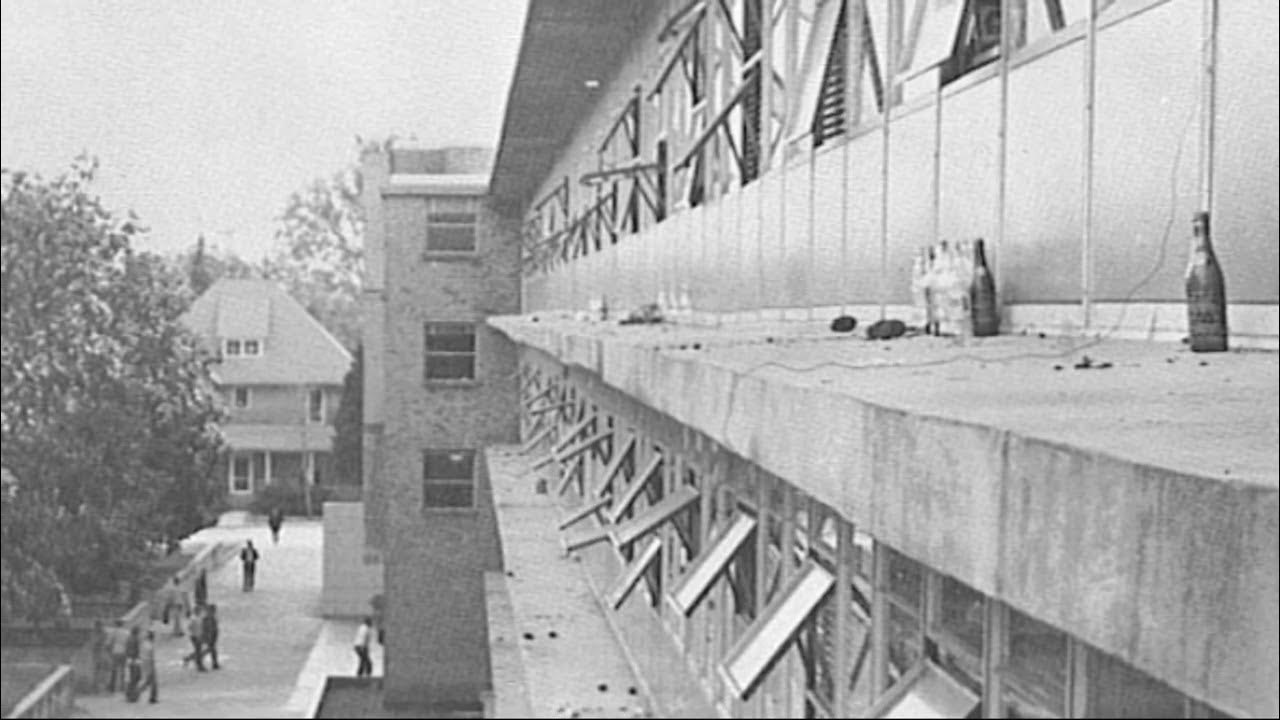 The complex had 1,000 rooms with a dining hall, loggia, canteen, barber shop, etc. When it was built, it was the largest college dormitory in the US.