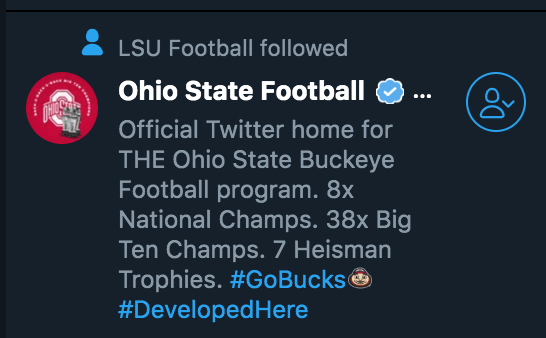 LSU followed OSU on Twitter cause it could be there potential next opponent. NOT!!!