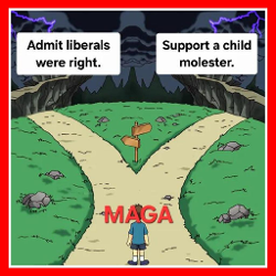 And spare us the 5,000-word diatribe about autopen or any other red herrings you want to throw out there. We were talking about Trump's involvement with his known best buddy, Epstein. Even though it's funny as hell watching you twist and turn, trying to reconcile the fact that your infallible master is human garbage, it sure would be nice if you could stay on topic.