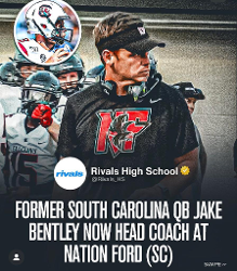 I Coach against Bobby Bentley when he was at Byrnes HS. He changed the HS game with his offense in the early 2000s. When he went to PC, the decision to transition from DII to DI was in the works. This was a MAJOR mistake! PC has a small alumni base because of its size and thus limited monetary resources. He was at PC for two years going 6-5 his first year and 4-7 his second year. Michael Allen was the HC at Nation Ford before JB. He had several DI players during his tenure at NF. The biggest problem with NF is a new Principal and AD. JB was the OC at Rock Hill HS last year and did a good job with the QBs. Time will tell us how he does, but the community is excited from what Iām told.