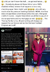 I was dumb enough to read some of the comments. One idiot was saying the father admitted in the post that Clemson had bought the house based on the "orange door because we are All In" comment. Anyone with a brain knows he meant that they picked the door color due to the Clemson ties, but this idiot took that to mean they were able to have the house because of being All In.