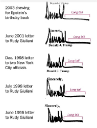- - - had a signature unlike any that has been seen from among thousands of Trump signatures, including those from many decades prior.