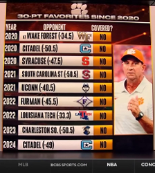 Re: Clemson has not covered a 30+ point spread in 5 years