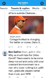 I think if you read the article objectively, instead of with a preconceived notion of what you think about Dabo or David, it is pretty factual. David doesn't really criticize Dabo, but points out that Dabo has been criticized, right wrong or otherwise, which is true. He doesn't take a side in that fight. He points out Dabo's view of the criticism, and that of the players and coaches, who love him but who also say he has stepped in it a few times. The bottom line is the loudest criticism comes from those with no vested interest in the program. They want Dabo to change to suit them, not the program or Clemson University. That isn't going to happen. I think the article does a good job of pointing that out if you read it objectively.